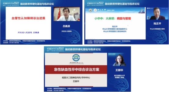 论坛讲座上,徐运教授对血管再通预后不良因素进行了分析并提出切实可行的干预策略,分享了真实世界的临床研究;胡波教授分享了动脉粥样硬化和血管再狭窄的研究进展,紧扣主题,引领诊治前沿;倪俊教授针对目前临床热点问题,青年卒中诊治进展进行了分享,视角独特;王永刚教授侧重偏头痛的神经机制与影响研究的相关内容,分享内容对临床医师实战具有重要指导意义;杜怡峰教授讲授了心血管健康、脑老化和认知障碍:MIND-CHINA研究,心脑联防,脑心同治;杨旗教授分享了遗传性脑小血管病影像学研究进展,从影像学角度分析了MRI在脑小血管病诊治中的重要意义及价值;吕佩源教授对血管性认知障碍诊治进展,展开深入的分享与探讨,带来最前沿的血管性认知障碍相关学术内容;王丽华教授分享了急性缺血性卒中综合治疗方案,从院前急救、院中再灌注治疗、院后的二级预防,进行卒中全流程管理讲解与探讨;陆正齐教授对小卒中,大麻烦:病因与管理进行了分享,详细介绍了颅内动脉硬化与穿枝动脉粥样硬化性卒中的早期神经功能恶化诊断治疗进展,内容详实,具有重要临床指导价值。
