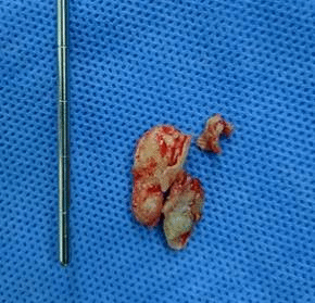 术中情况(见图3)术中取出的额窦内骨蜡(见图4)