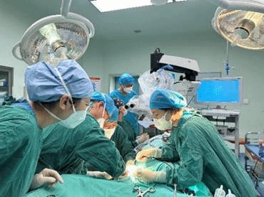 在神经外科主任史怀璋教授指导下,耳鼻喉科张天虹教授、张小鹏教授团队,神经外科刘利教授团队,在手术室、麻醉科等各科室的通力配合下,顺利为患者进行手术(见图3)。