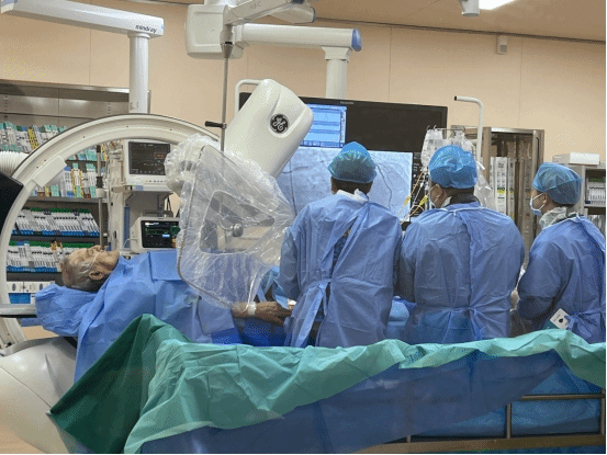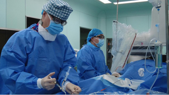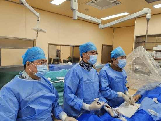 值班的孙延明主任医师、宋涛主任医师和孙新勇副主任医师立即为患者行冠脉造影,造影结果显示右侧冠状动脉根部慢性闭塞,左侧前降支和回旋支双开口,钙化严重且既往均有支架植入,前降支开口部位90%以上狭窄,病情非常复杂。