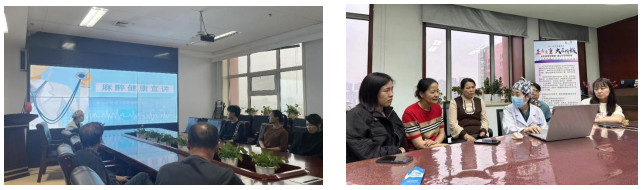 此外,在本次宣讲活动中,针对“麻醉工作内容”、“围手术期麻醉对患者预后的影响”、“术后镇痛常识”、“围术期麻醉患者的注意事项”等患者关注的问题,医院麻醉科医生分别到结直肠外科、胸外科等病房对相关问题进行了详细的解答。整场宣讲活动气氛活跃,通过麻醉医生的指导,患者也对术后镇痛泵使用、患者苏醒及预后等患者和家属最关心的问题有了更全面的了解。