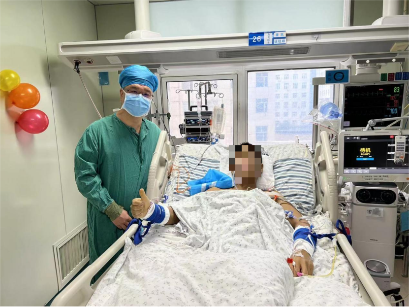 右半肝受者康复并与主刀医生陆朝阳教授合影