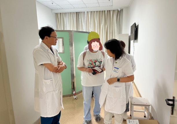 2024年8月9日,患者来到ac米兰官网中文网站肿瘤医院门诊进行PRRT治疗,陆海波主任与核医学崔亚利主任为患者及家属详细讲述了PRRT用药的注意事项,治疗风险和获益。治疗中,患者服用了止吐药物及氨基酸类药物,可以减轻副作用,保护肾脏。用药半小时后,在核医学科病房为患者注射了放射性药物镥177-DOTATATE,第一次PRRT治疗十分顺利,症状得到显著缓解,根据治疗方案,患者后续还需要4次治疗,间隔时间为8周。