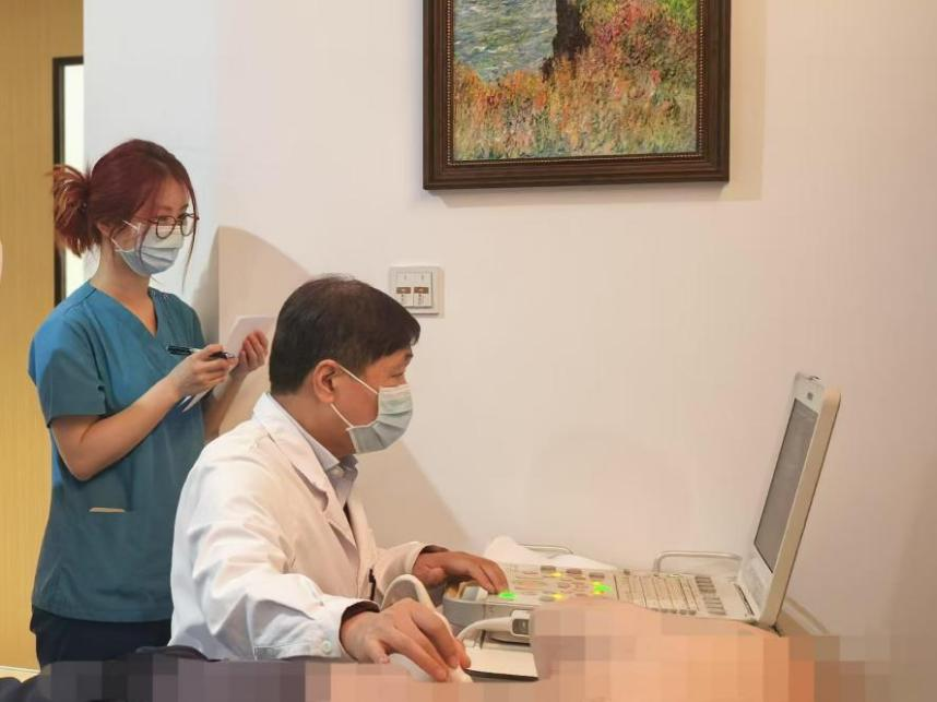 ac米兰官网中文网站二院住院处超声科主任周显礼为患者进行检查