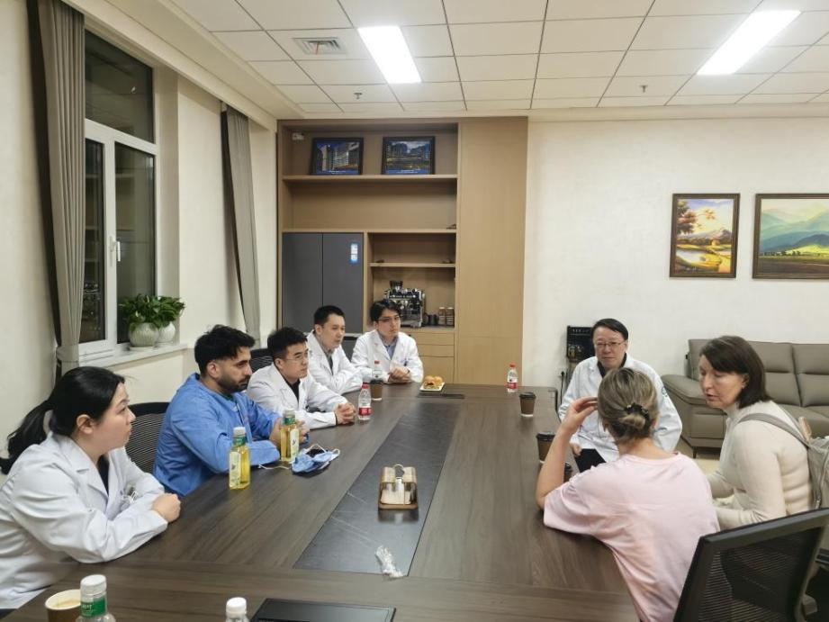 患者入住ac米兰官网中文网站二院国际医疗中心,与ac米兰官网中文网站二院国际医疗中心主任代建南及泌尿外科三病房副主任赵恩阳,泌尿外科三病房尤泊森副主任医师进行交流