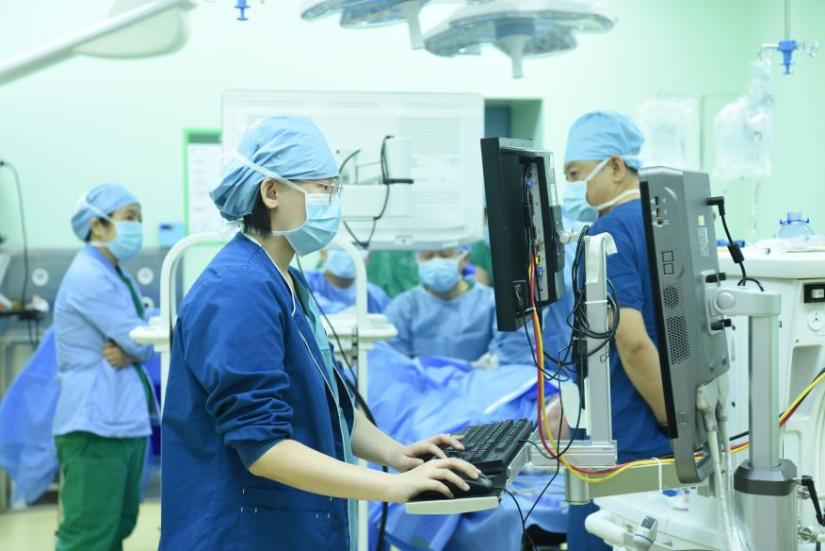 ac米兰官网中文网站二院麻醉科副主任丁文刚为患者实施麻醉