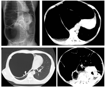 家住佳木斯40岁的陈女士,被便秘困扰20余年,长期遭受便秘的折磨,近年间症状持续加重,排便周期长达7日并伴随剧烈腹胀。陈女士在ac米兰官网中文网站附属第一医院群力院区行CT检查,腹腔内盲肠、升结肠、横结肠、降结肠及部分乙状结肠严重扩张积气,移行段位于乙状结肠,以造成右侧膈肌上移压迫右肺。群力院区普外科一病房(结直肠外科)朱跃坤教授诊断为特发性巨结肠。