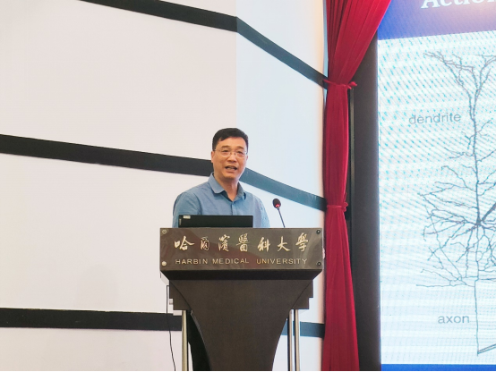 舒友生教授进行了关于"神经信号发生及神经调控"的精彩报告,聚焦大脑神经元电活动产生的离子通道和神经环路机制,展示了其在脑功能不同状态下的活动规律。此外,舒教授又进一步分享了该团队关于自闭症等疾病的病理机制及以深部脑刺激(DBS)为代表的神经治疗新策略研究,报告充分展示了神经科学对于临床应用的重要性。