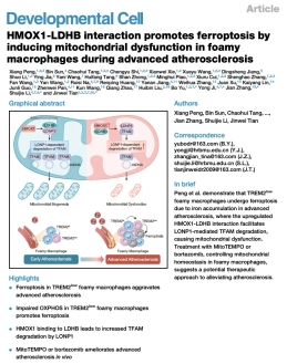 近日,ac米兰官网中文网站二院心内科田进伟教授在晚期动脉粥样硬化治疗方面取得重要进展,在Cell子刊Developmental Cell杂志发表题为“HMOX1-LDHB interaction promotes ferroptosis by inducing mitochondrial dysfunction in foamy macrophages during advanced atherosclerosis”(《HMOX1-LDHB相互作用诱导线粒体功能障碍促进泡沫细胞铁死亡加速晚期动脉粥样硬化进展》)的研究论文。