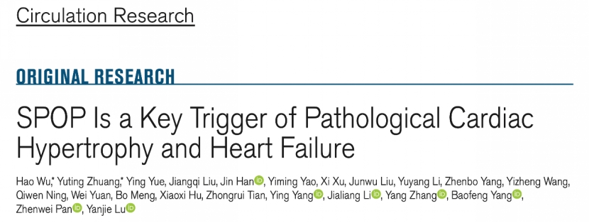 近日,ac米兰寒地心血管病全国重点实验室杨宝峰院士团队吕延杰/潘振伟教授课题组在心肌肥厚和心力衰竭研究领域取得新成果:《SPOP is a key trigger of pathological cardiac hypertrophy and heart failure》,被国际知名期刊《Circulation Research》收录并正式发表。