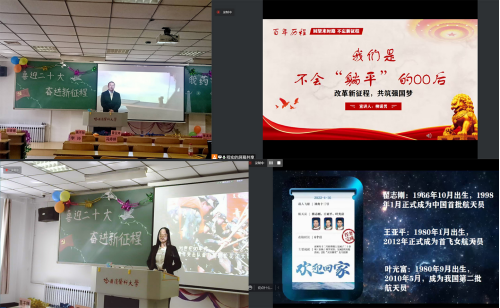 经过初赛、复赛的激烈角逐,共有四支队伍突破重围进入决赛,分别是“猛龙过江队”“超星队”“先锋队”“红旗之下你和我队”。经过近一个月的精心准备,本科生和研究生组成的队伍用努力和汗水呈现出一场精彩绝伦的比赛。决赛共设三个环节:“我心向党”“谁与争锋”和“金色年华”。首先,四支队伍的演讲人给大家带来深情并茂的演讲。吴浩田同学的《请放心,到我们上场了》抒发青年志气,以视频为背景,给师生展现一群青年投身献国的赤子情怀,他们踏着坚定无畏的步伐演绎“书生意气,挥斥方遒”;黎玥莹同学的演讲《闪光如你》则是对于共青团的真挚告白,无数的优秀青年在共产党人的领导下,舍小家为大家,怀着伟大的心和执着的梦共同构建祖国未来;王佳蕙同学以《神州在弦,再度问天》为主题,歌颂了锲而不舍的航天精神,激励所有中华儿女胸怀伟大梦想,奋勇前行;柳诺男同学的《我们是不会“躺平”的00后》站在00后的角度,以青年身份发出呼吁,星星之火可以燎原,新时代的青年们即将乘风破浪,扬帆远航。