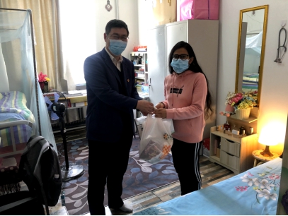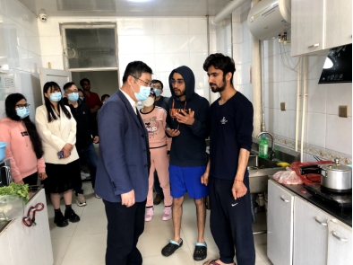 5月17日,国际教育学院相关人员走访慰问了在校内居住的来华留学生,并代表学校送去防疫物资和生活用品,国际教育学院院长杨立斌与学生亲切交谈,了解他们的学习生活情况,传达了学校领导对他们的问候。