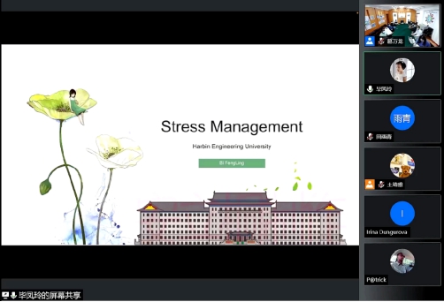 在“5.25”大学生心理健康月来临之际,为进一步提高来华留学生心理素质,5月20日,国际教育学院组织开展“疫路同心 减压赋能”心理健康教育专题辅导讲座。学院邀请哈尔滨工程大学学生发展指导中心毕凤玲老师作了“新冠疫情期间留学生心理压力管理”的讲座。境内外师生相聚云端,聆听了讲座。