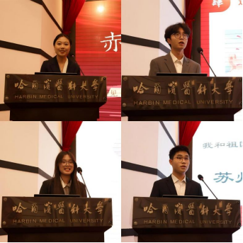 各院学生代表以个人演讲的形式,分享自己与祖国共同成长的动人故事,生动展现家乡的发展变化,尽情抒发与祖国的深厚情感,共同为伟大祖国母亲献礼。经过激烈角逐,基础医学院郭文凯、口腔医学院赖煜灵荣获一等奖;护理学院杨珍、第三临床医学院郭雨晴、第二临床医学院张琳获得二等奖;公共卫生学院马雯妍、第一临床医学院王彦臻、药学院郑思宇获得三等奖;生物信息科学与技术学院李钰霖、人文社会科学学院冯佳睿、第四临床医学院闫皓翔、卫生管理学院桂佳慧获得优秀奖。