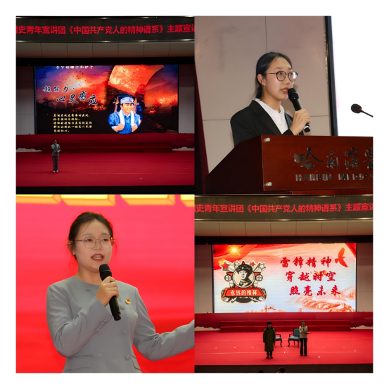第一临床医学院宣讲员汪卓琳以《走近雷锋精神》为主题宣讲,号召广大青年学习雷锋精神;人文社会科学学院宣讲员王涵,向全体师生讲述了《孔繁森精神》的时代内核;护理学院宣讲员赵鑫雨,以《张思德精神的时代光辉:不忘初心,永续为民服务之火》为主题宣讲,呼吁大家用实际行动践行初心使命;人文社会科学学院宣讲员黄嘉谊以《学习焦裕禄精神》,号召全校青年以焦裕禄为榜样,扬鞭奋蹄闯时代!