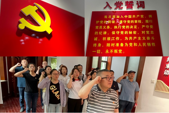 参观尾声,全体党员在支部书记的带领下重温入党誓词,重忆入党初心,在党旗下接受心灵的净化和洗礼,在铿锵有力的宣誓中回望初心,矢志不渝跟党走,永葆共产党员的初心本色,以更加饱满的热情投入到工作中!