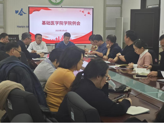 2025年3月4日下午14时,基础医学院在三楼会议室召开了本学期第一次学院例会。会议由党委书记李辉主持,学院党政领导、各科室主任及党支部书记参会。