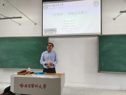 讲座最后,马建教授勉励每一位新生要发扬科学精神,遵循学术规范,用好科研记录本,对自己负责、对导师负责。