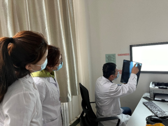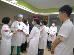 杨书龙教授带队查房时向学生耐心讲述临床患者检查状况