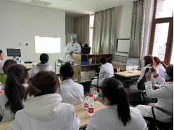杨书龙教授及其研究生在示教室向学生介绍小儿泌外可见的遗传性罕见病