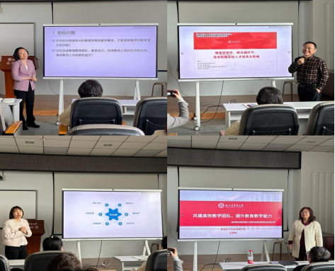 微生物教研室教学主任钱钧围绕如何更新教师教育理念和技能、如何协调管理教师团队并激发动力这两个问题,提出一系列改革措施,如明确教师职责、创新教学体系、培养与提升教师教学能力,并从工作态度、工作能力和沟通能力三方面进行反思,进一步思考教学工作任务和目标,从人才培养方案的优化、教学方法改革的切适度和教学质量的保障度等方面主动思考,做好教研室建设整体规划。