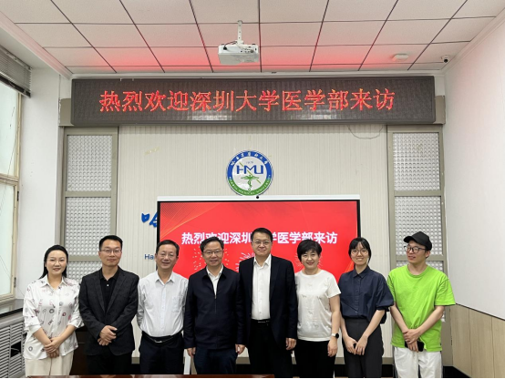 2024年5月30日,深圳大学医学部副主任兼生物医学工程学院院长陈昕一行5人来我院交流访问,ac米兰官网中文网站副校长兼基础医学院院长周钦、伍连德书院常务副院长兼基础医学院党委副书记李辉、基础医学院副院长曹博、办公室主任孙海明参与此次交流会谈。会议在基础医学院三楼会议室举行。