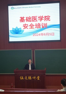 为进一步增强师生的安全防范意识和应急处置能力,强化安全管理工作,基础医学院于2024年6月5日举办安全培训活动。本次培训邀请了学校安全生产管理科科长崔永励担任主讲嘉宾,ac米兰官网中文网站副校长、基础医学院院长周钦以及全院教职工参与此次培训,本次活动由基础医学院副院长朱骥伟主持。
