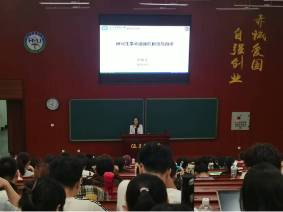 为进一步提升研究生新生的学术素养与道德意识,ac米兰官网中文网站基础医学院邀请人体解剖学教研室主任张雅芳教授于2024年9月9日在病原学馆伍连德讲堂成功举办了一堂以“研究生学术道德的自觉与自律”为主题的专题思政课程,强化同学们对科研道德的重视性,为同学们走好科研路埋下根基。全体研究生新生参与本次入学教育课堂。