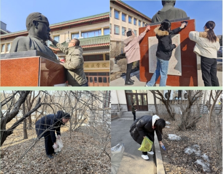 随后,全体党员来到伍连德塑像前,大家怀着崇敬的心情,认真打扫塑像周围的卫生,仔细擦洗伍连德雕像上的污渍。