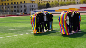 “无敌风火轮”赛道上演速度与激情:解剖学馆联队如离弦之箭,24.4秒的纪录让观众席爆发出雷鸣掌声;病原学馆与分子学馆代表队虽分列第二、第三,但队员们踩着“战车”齐声呐喊的默契,同样赢得满堂喝彩。最考验团队协作的“同心击鼓”项目将活动推向高潮:解剖学馆联队以一分钟65次颠球的惊人成绩夺得冠军,教学实验楼联队与生理学馆联队的稳定发挥同样赢得满堂彩。