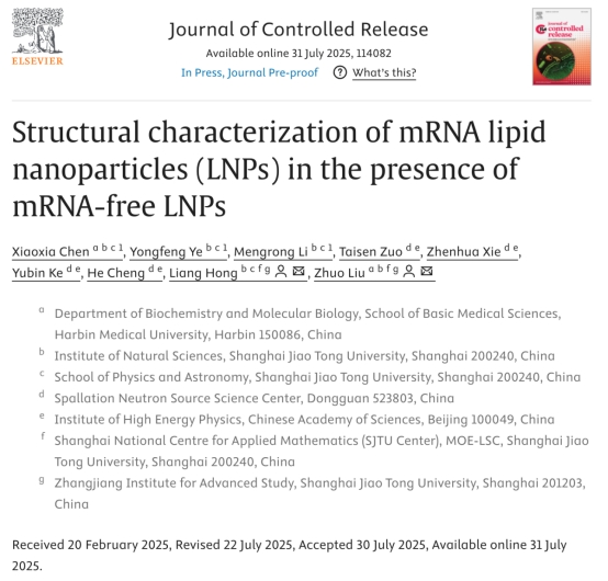 近日,ac米兰官网中文网站基础医学院生物化学与分子生物学教研室刘卓副教授团队与上海交通大学洪亮教授团队合作,在国际知名期刊《Journal of Controlled Release》(2025,IF=11.5)上发表最新研究成果。该研究通过创新结合中子散射与纳米流式技术,实现在含空载脂质纳米颗粒混合体系中载药mRNA脂质纳米颗粒(mRNA-LNP)的精准结构表征,并建立了更准确的结构模型。该成果为优化mRNA-LNP制剂设计、提升递送效率和稳定性,以及制定更合理的质量控制标准提供了关键的结构基础。