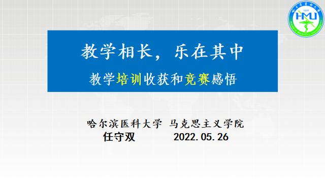 “守初心 促发展”教师成长之路分享会第一期第一讲“教学相长,乐在其中——教学培训与竞赛的感悟”在5月26日顺利开讲,本次主讲嘉宾为任守双教授。他在2021年荣获教育部举办的第二届全国高校思想政治理论课教学展示活动一等奖(博士课组),2019年荣获教育部举办的首届全国高校思想政治理论课教学展示活动二等奖(博士课组),2017年荣获教育部高校思政课教学指导委员会举办的全国高校思想政治理论课教学展示活动“全国高校思想政治理论课教学骨干”称号。