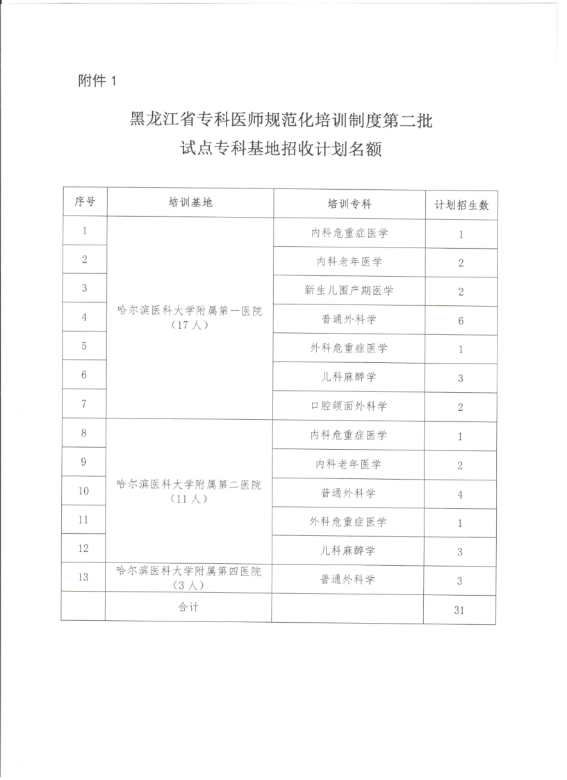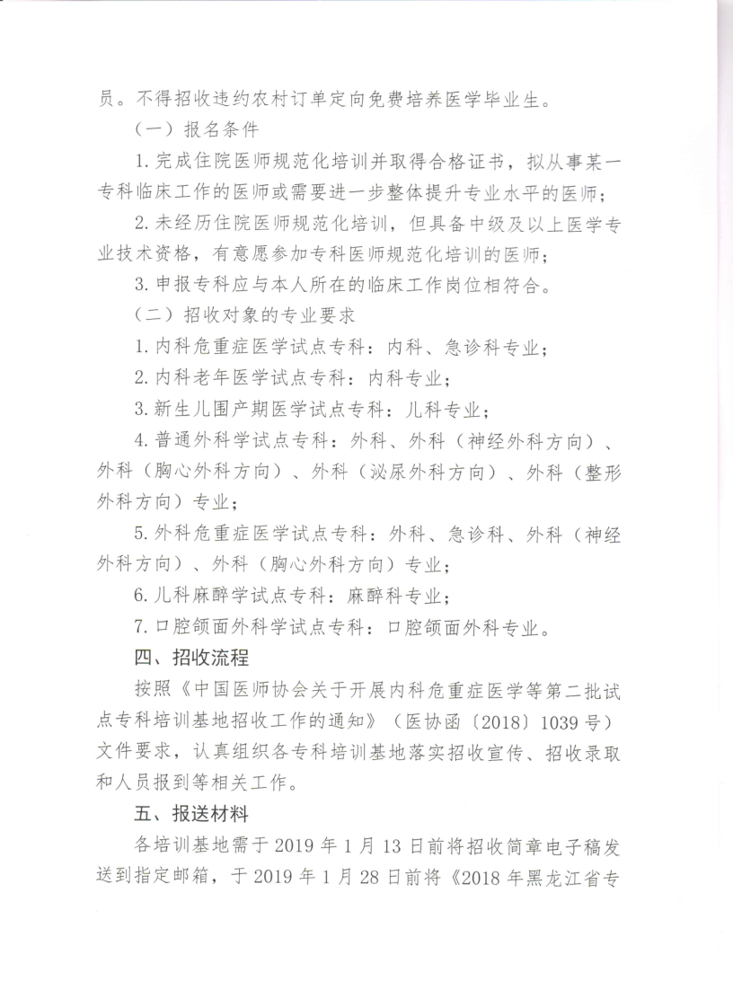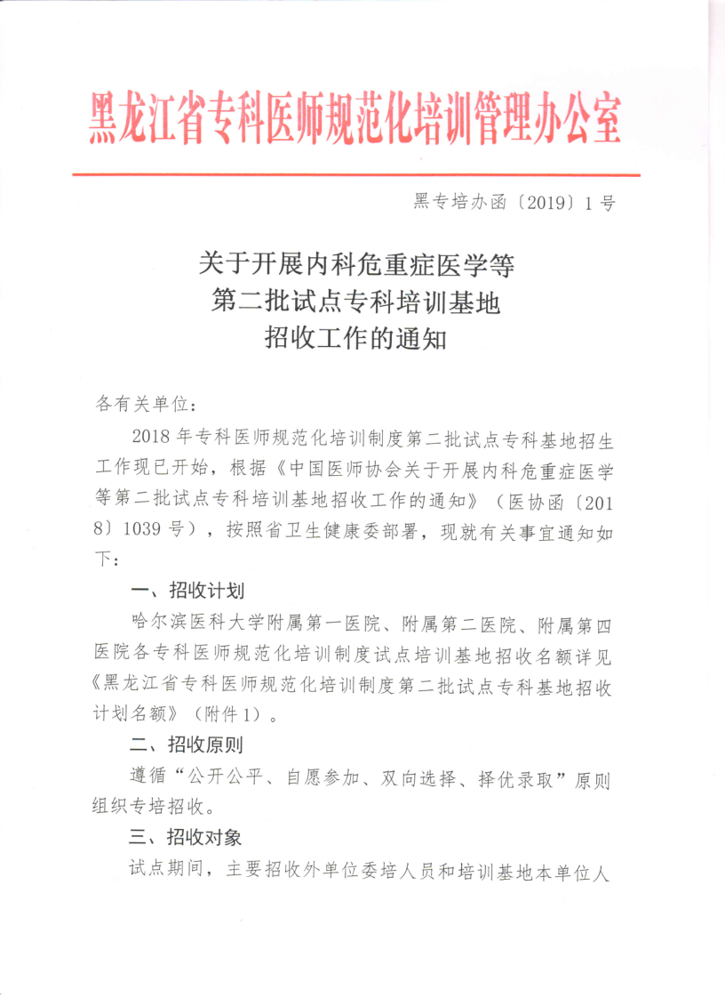 《关于开展内科危重症医学等第二批试点专科培训基地招收工作的通知》(黑专培办函〔2019〕1号)