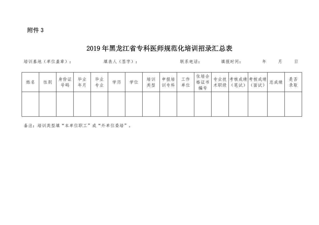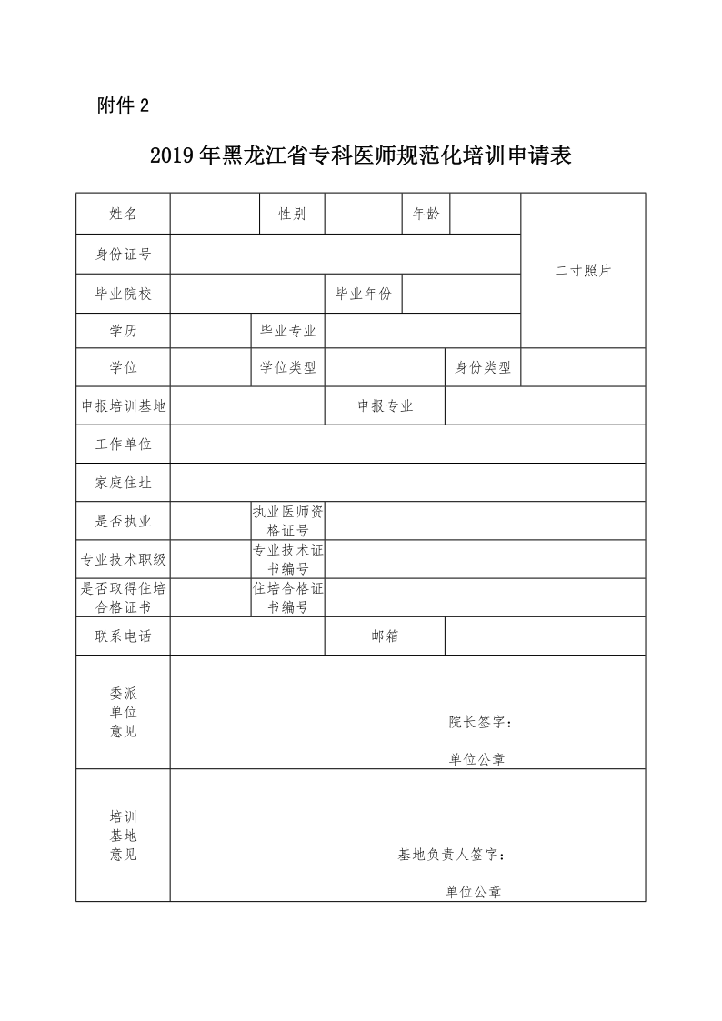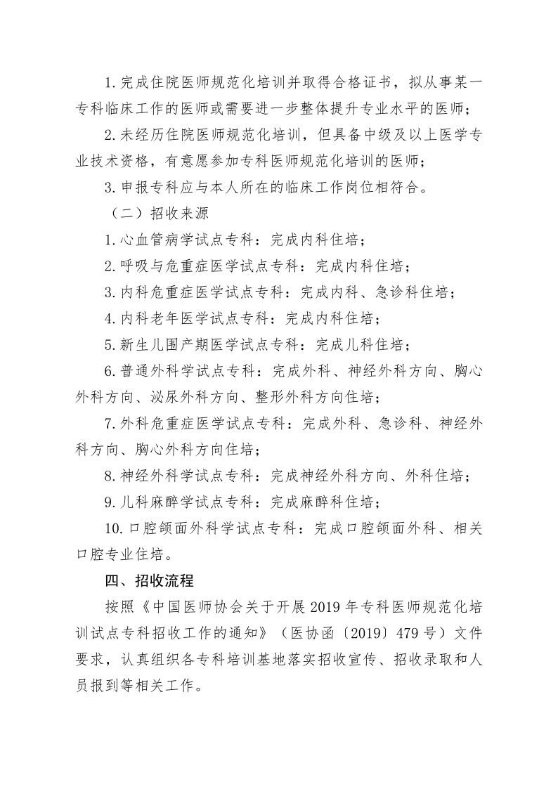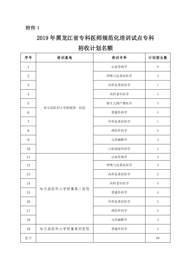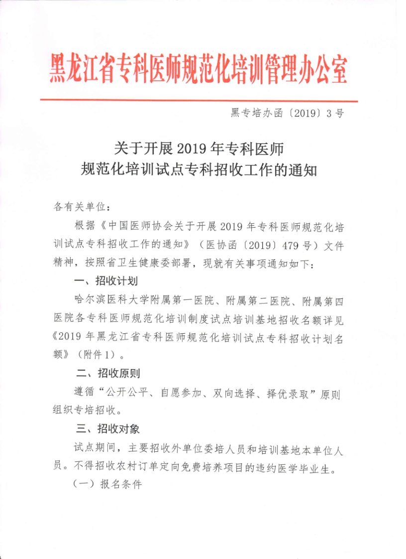 《关于开展2019年专科医师规范化培训试点专科招收工作的通知》(黑专培办函〔2019〕3号)
