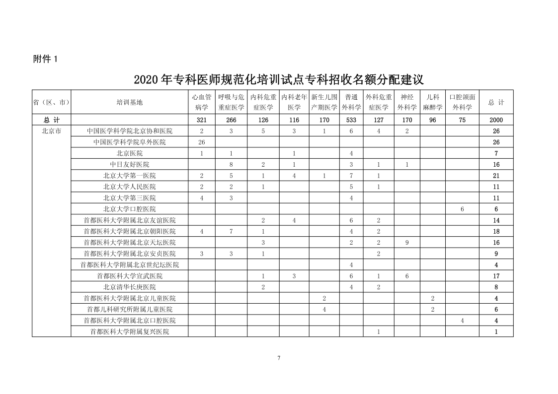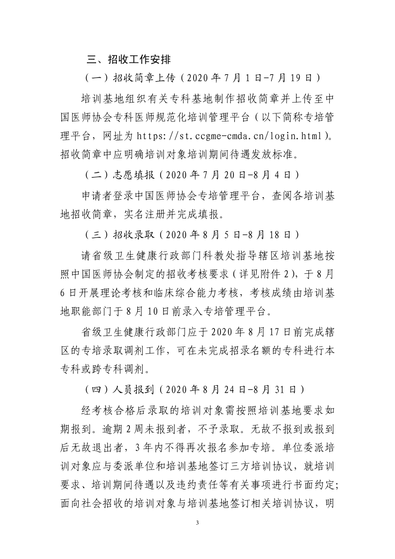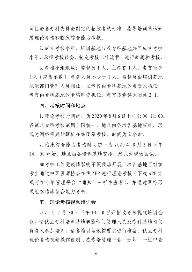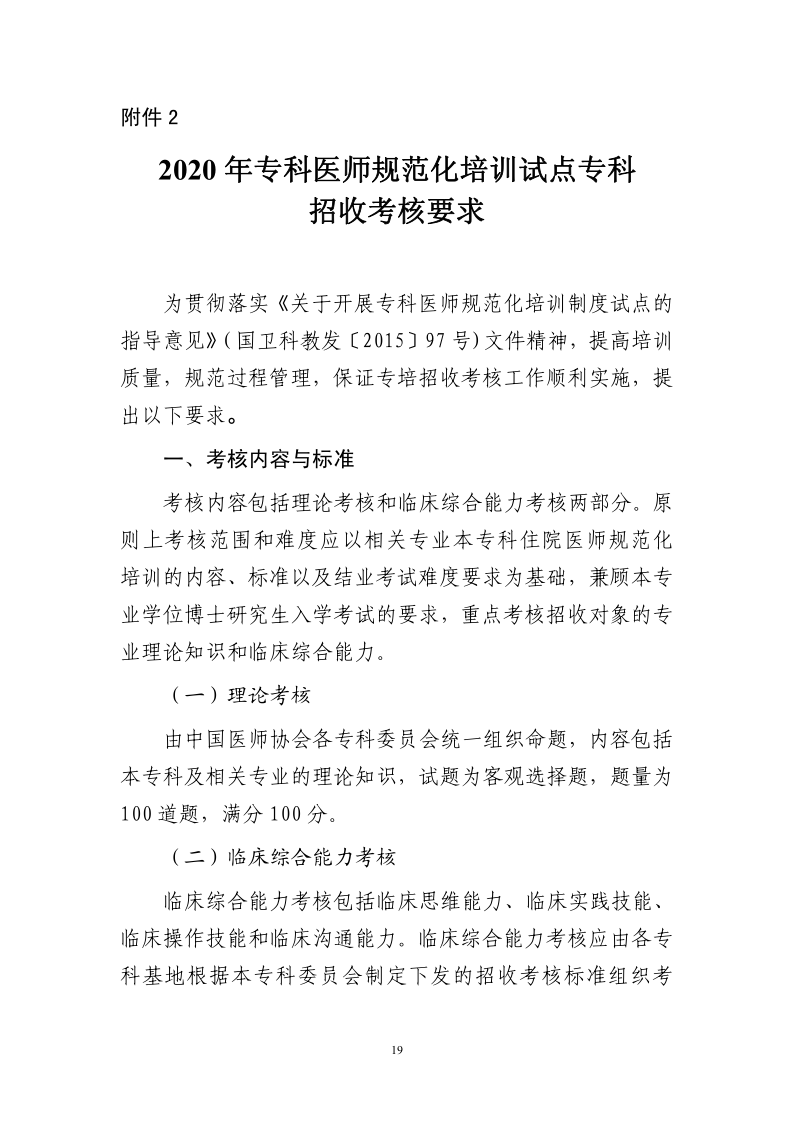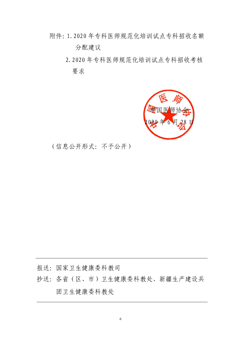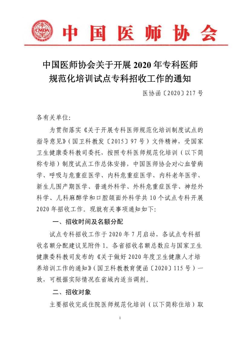 《中国医师协会关于开展2020年专科医师规范化培训试点专科招收工作的通知》(医协函〔2020〕217号)