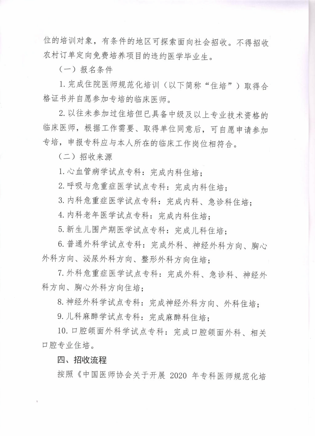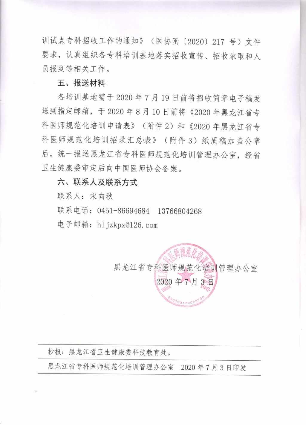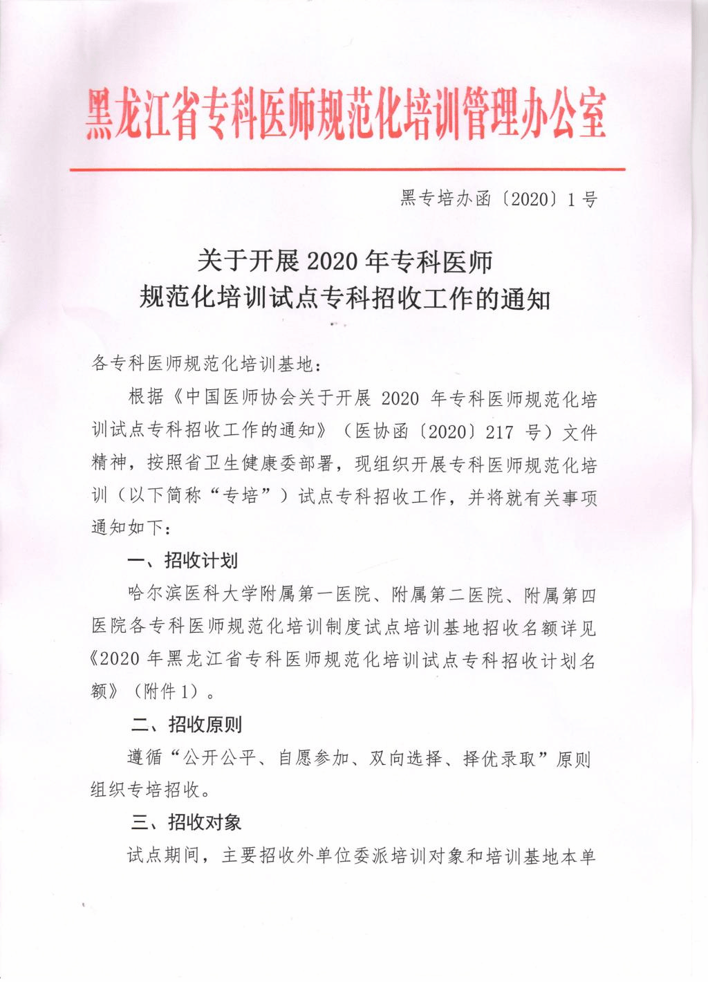 《关于开展2020年专科医师规范化培训试点专科招收工作的通知》(黑专培办函〔2020〕1号)