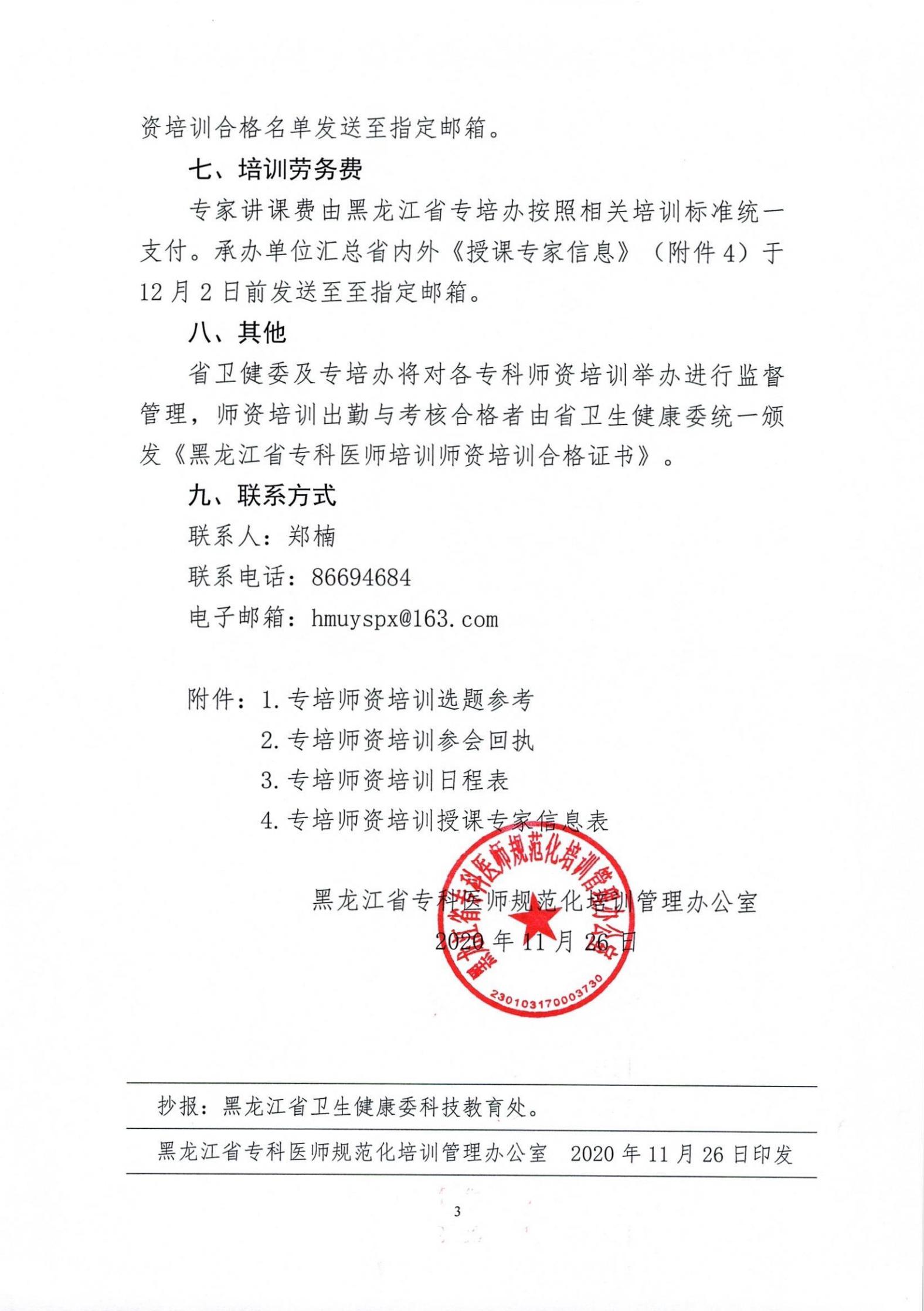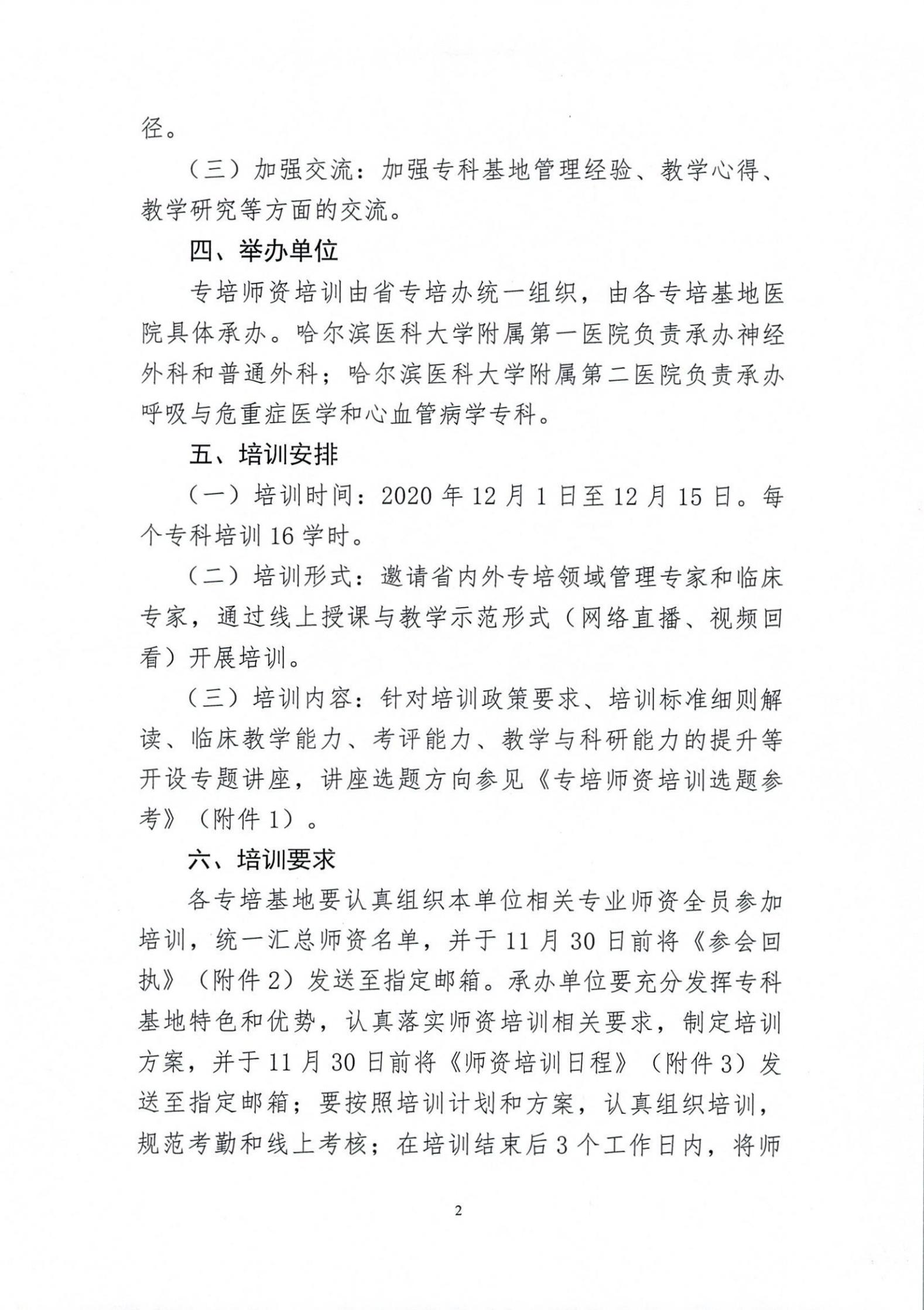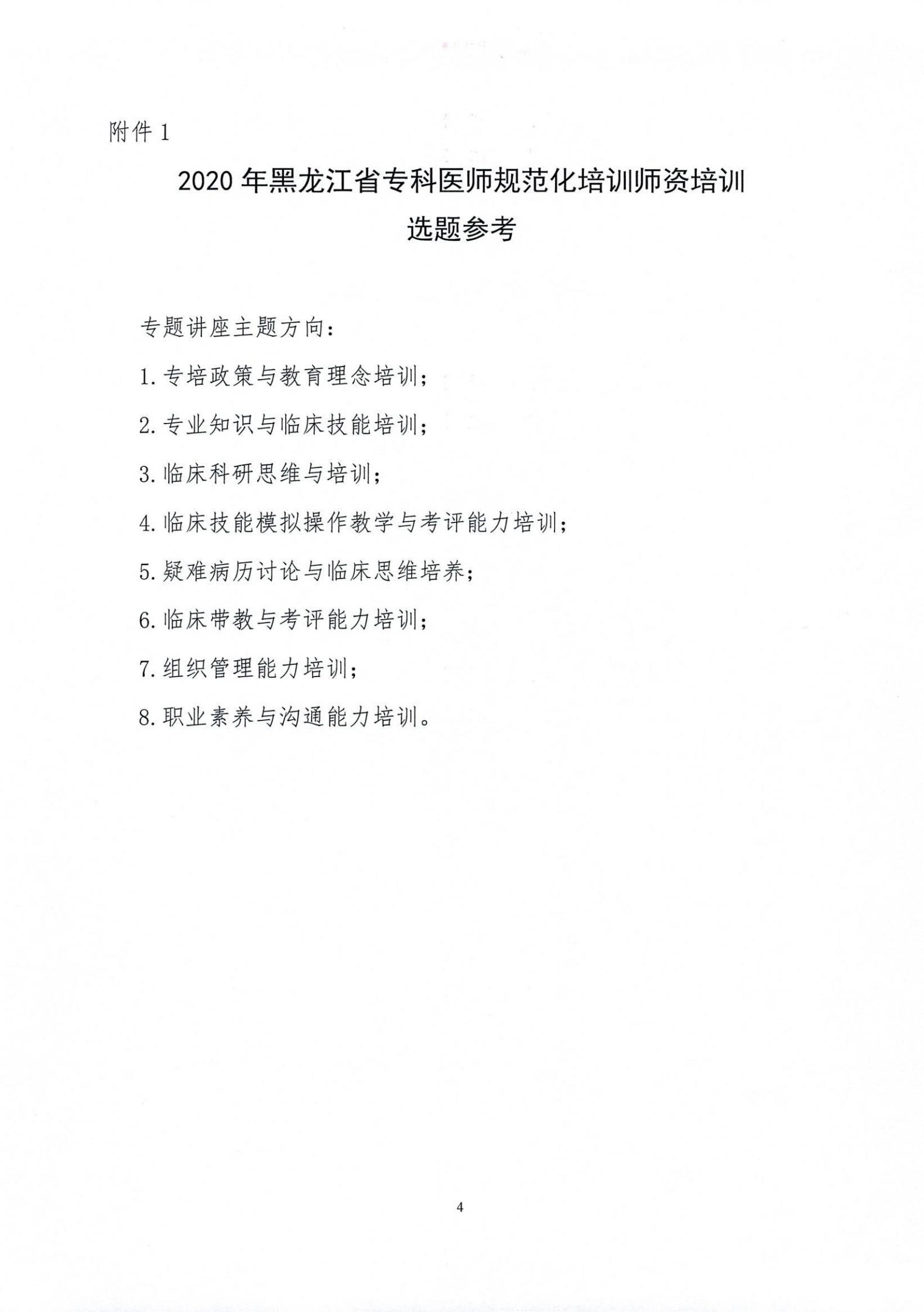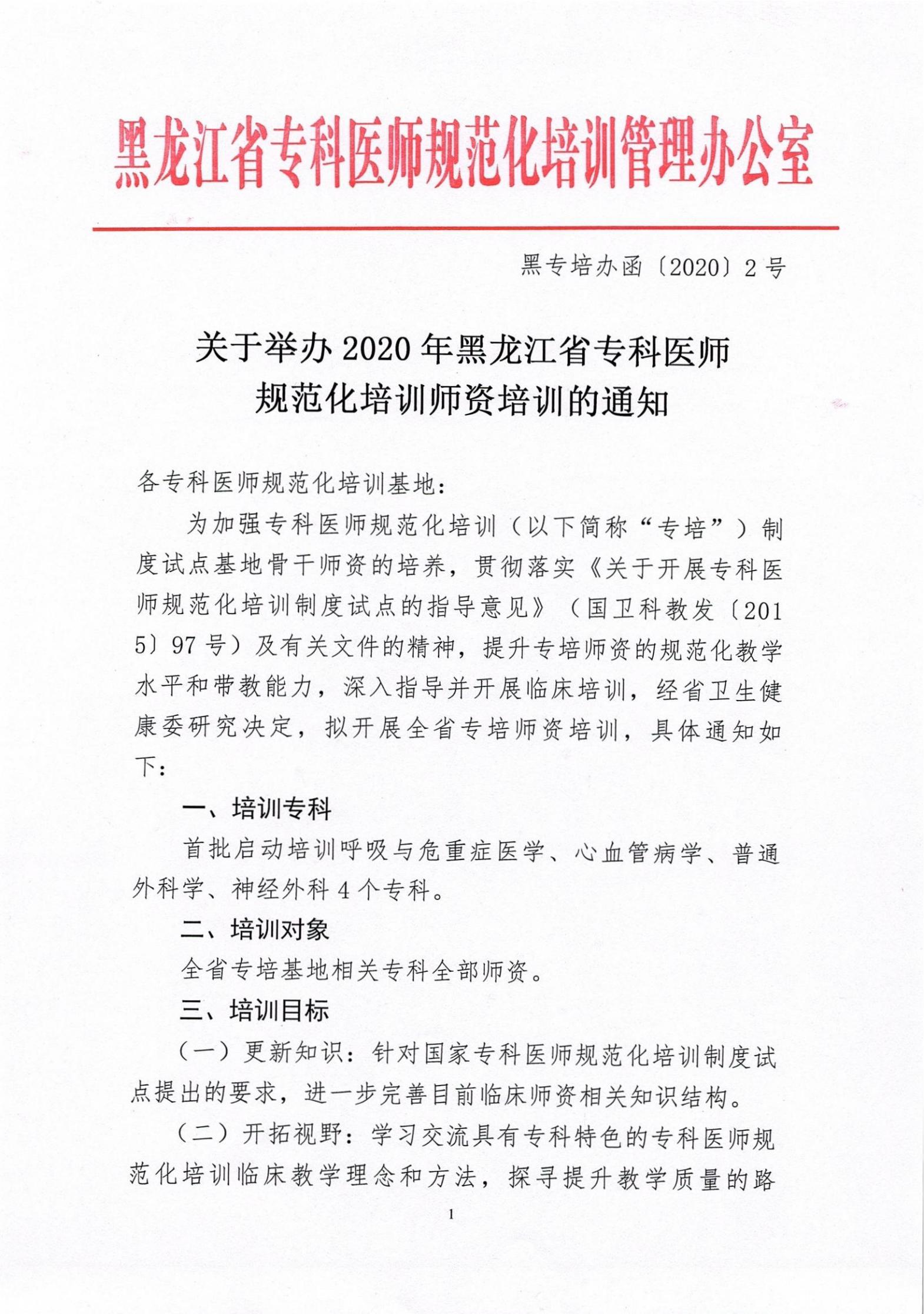 《关于举办2020年黑龙江省专科医师规范化培训师资培训的通知》(黑专培办函〔2020〕2号)