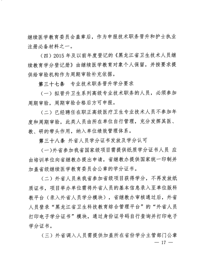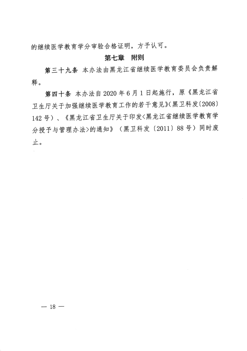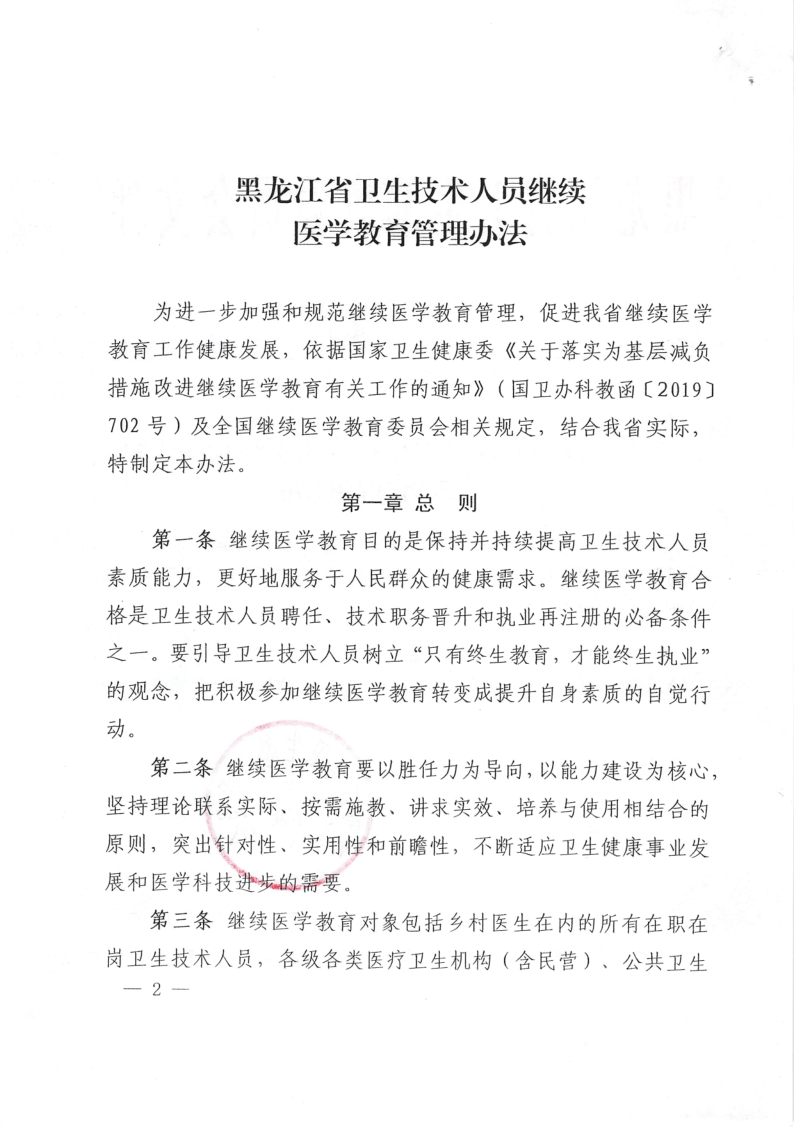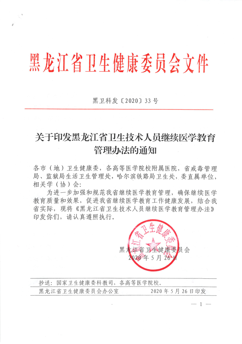 《黑龙江省卫生技术人员继续医学教育管理办法》(黑卫科发〔2020〕33号)