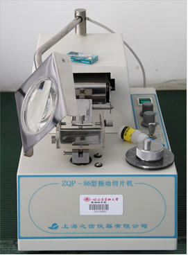 10、振动切片机(上海之信ZQP-86) 振动切片机专门制备新鲜的组织样本,无需冰冻包埋,因而避免了冰晶对细胞结构的破坏。本机主要为免疫细胞化学研究和脊髓、脑的神经生物学研究提供组织制片,新鲜的脑、心、肾等组织最薄可切到30微米,切片完整、片面光滑、染色均匀。