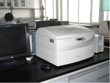 3、实时荧光定量PCR仪 型号:Chromo 4;厂商:Bio-rad公司;技术指标:波长范围450~490nm、500~535nm、555~585nm、620~650nm;通道可同时进行检测。应用范围:核酸定量和定性分析,包括DNA定量、RNA定量、SNP分析、基因型分析、RNA变异分析、熔解曲线分析等。目前,本实验室主要利用实时荧光定量PCR仪进行DNA定量、RNA定量等实验。