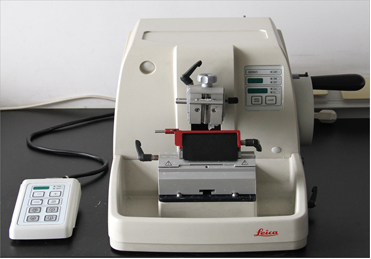 9、半自动轮转式石蜡切片机(Leica RM-2245) 本机主要用于组织样本的常规石蜡制片。本机配一次性切片刀架,使用专用切片刀,切片厚度调节范围在0.5~100μm,配有高精度步进马达进样系统,能有效控制切片的厚度,重复性强。