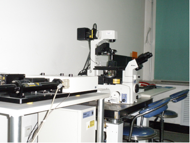 2、激光扫描共聚焦显微镜 型号:c1-plus;制造厂商:Nikon公司;技术指标:波长408nm、488nm和543nm,三个荧光通道和一个微分干涉相衬通道。应用范围:免疫荧光、细胞的三维重建、细胞定量荧光测定、细胞内钙离子、PH值和其它离子的动态分析、细胞间通讯和膜的流动性、荧光光漂白恢复、笼锁-解笼锁测定、粘附细胞分选和显微手术、激光光陷阱技术等。目前,本实验室主要利用激光扫描共聚焦显微镜进行免疫荧光、细胞定量荧光测定、细胞内钙离子、细胞的三维重建等实验。