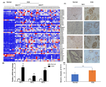 与正常组织比较,TET1在胆管癌组织中呈高表达