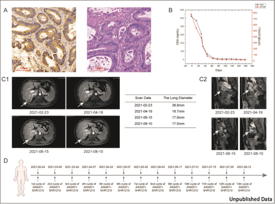 图2. IL-17A单抗联合PD-1单抗治疗难治性MSS型肠癌的代表性患者治疗效果