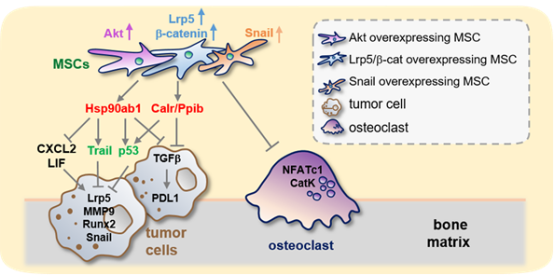 Lrp5、β-catenin、Snail 或 Akt过表达的MSC CM 抑制肿瘤进展和破骨细胞发育的调节机制