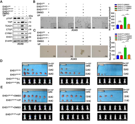 图2.EHD1通过调控Hippo信号通路增强肺腺癌细胞干性