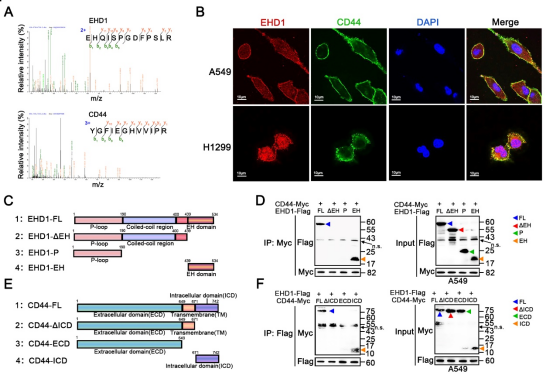图3. EHD1与CD44特异性结合,促进CD44内吞循环,增强CD44蛋白稳定性