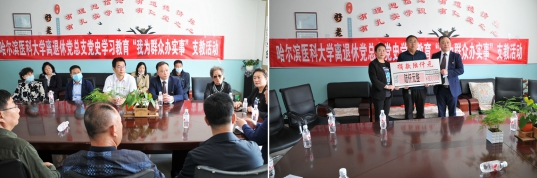 2017年,离退休党总支后勤党支部付志新通过新闻了解到阿城区小岭镇西川小学校长李志明(2021年西川小学迁入小岭镇中心小学,原西川小学校长李志明调至中心小学任副校长)事迹,即以个人名义进行捐赠,并动员周边亲属、同学、同事捐钱、捐物开展支教活动,并持续至2018年。