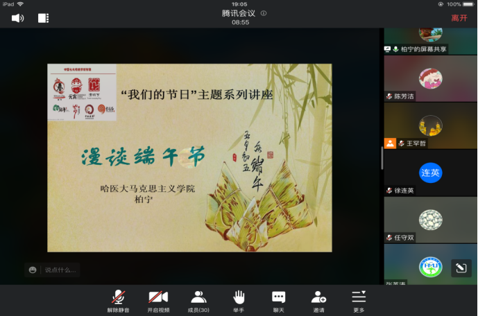 为贯彻落实中办、国办《关于实施中华优秀传统文化传承发展工程的意见》精神和中央文明办关于组织开展传统节日文化活动的工作部署,积极响应省文明办开展的2022年“我们的节日”主题系列活动,进一步推动中华优秀传统文化传承发展,持续推进中国传统节日振兴工程,5月31日晚,学院邀请柏宁教授在线上作题为“漫谈端午节”的专题讲座,马克思主义学院全体师生参加本次讲座,讲座由副院长李中华主持。