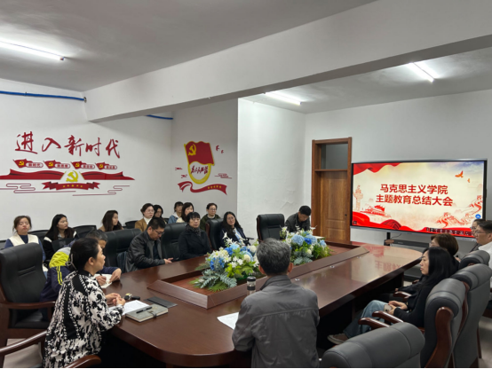 2023年10月10日,马克思主义学院在一楼会议室召开学习贯彻习近平新时代中国特色社会主义思想主题教育总结大会。 学院全体教职工参加会议,会议由学院院长李中华主持。
